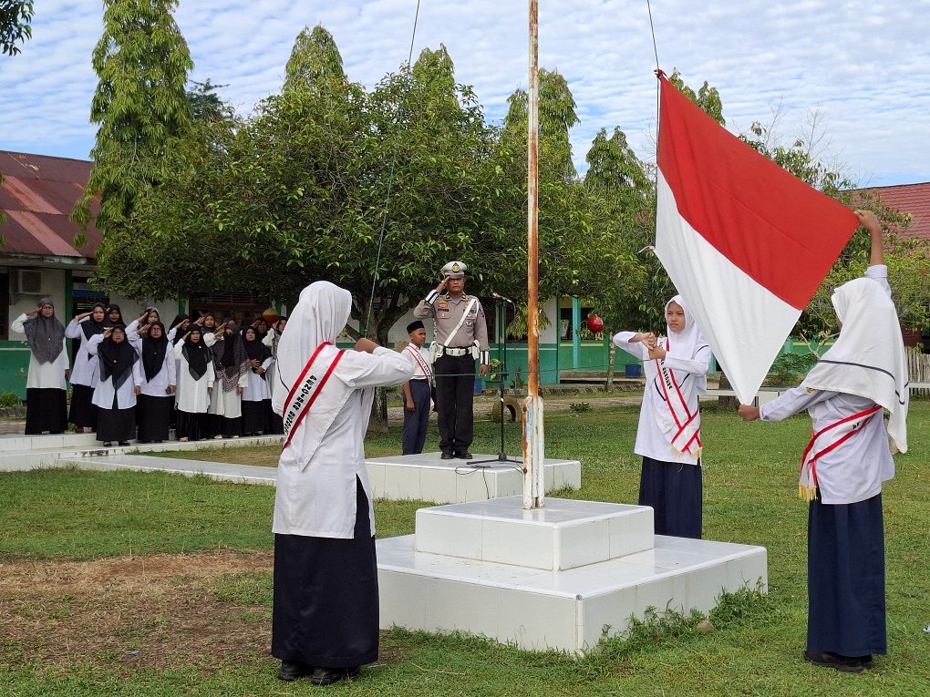 Iptu. Bustamam, KBO Sat Lantas Polres Aceh Timur Jadi Pembina Upacara Senin Pagi di MTsN 2 Aceh Timur