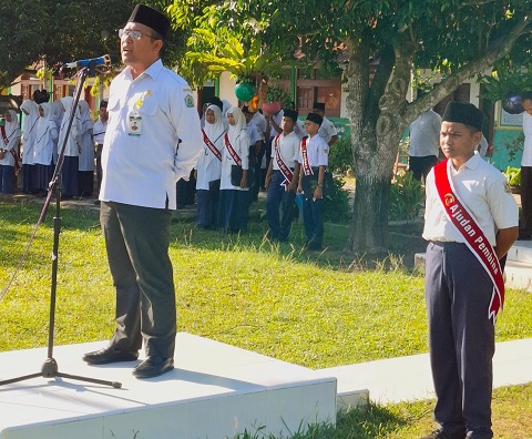 Upacara Bendera Hari Senin Tandai Awal Kepemimpinan Kepala Baru MTsN 2 Aceh Timur