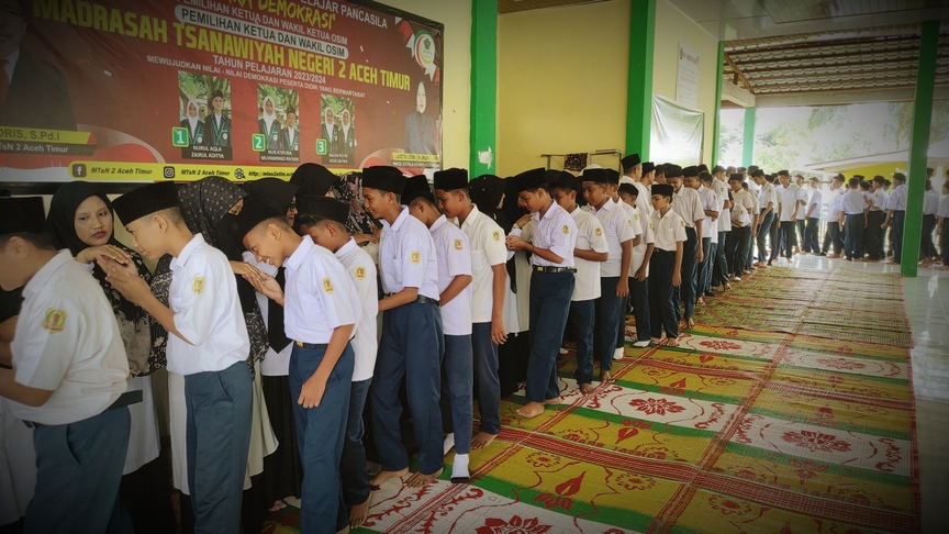 MTsN 2 Aceh Timur [27/7/2024] --- Dalam rangka memperingati tahun baru Islam Madrasah Tsanawiyah Negeri (MTsN) 2 Aceh menggelar kegiatan Shalat Dhuha, Tahlil, Tausyiah dan Doa Bers