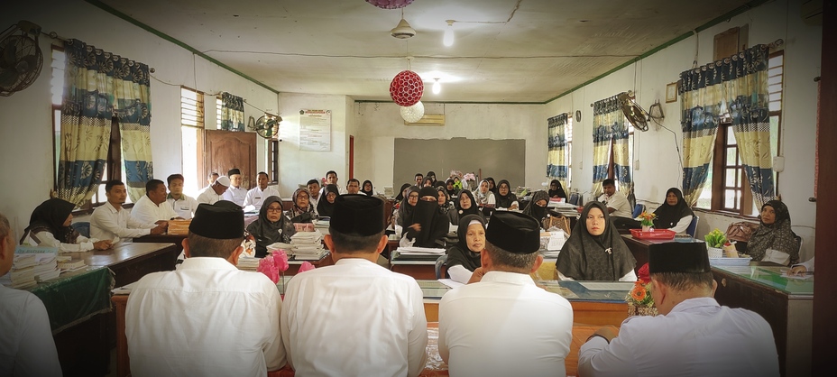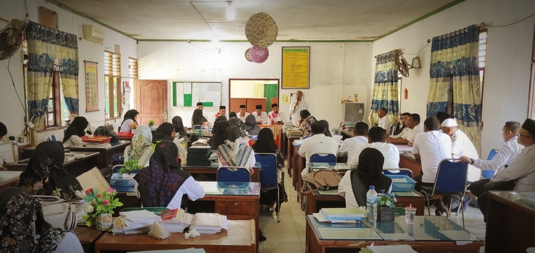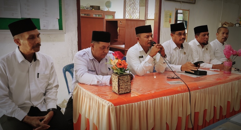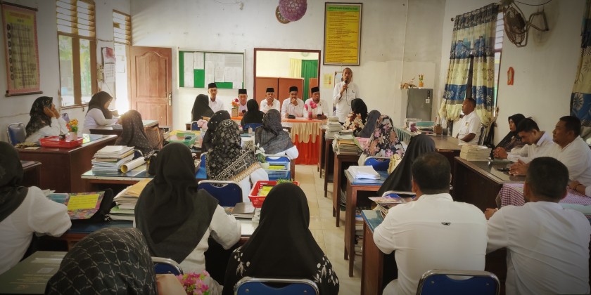 Idi - MTsN 2 Aceh Timur [16/04/2024] --- Hari pertama sekolah Kepala Kantor Kementerian Agama (Kankemenag) Kabupaten Aceh Timur, H. Salmina, S.Ag., MA., didampingi Kasi Pendidikan Madrasah Kankemenang Saiful Bahri, S.Pd.I beserta jajarannya melakukan silaturrahmi mendadak (sidak) di Madrasah Tsanawiyah Negeri (MTsN) 2 Aceh Timur dalam rangka sosialisasi pembahasan teknis dan membahas persiapan deklarasi komitmen bersama siap membangun Zona Integritas di MTsN 2 Aceh Timur.