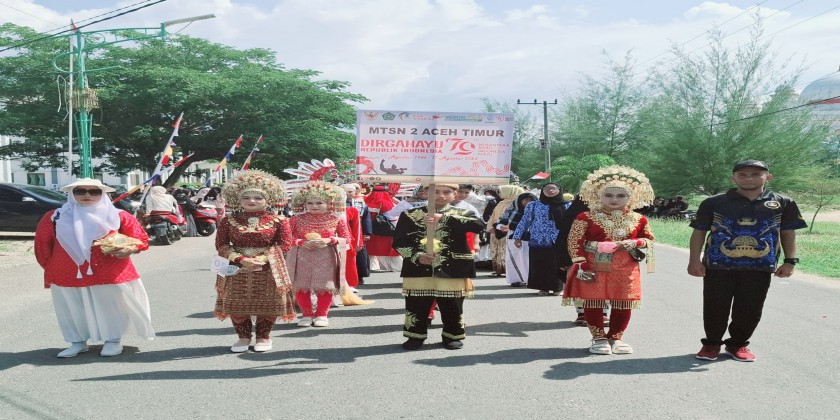 MTsN 2 Aceh Timur [17/8/2024] --- Dalam rangka memeriahkan peringatan HUT Kemerdekaan Republik Indonesia ke 79 tahun, MTsN 2 Aceh Timur turut serta berpartisipasi dalam rangkaian kegiatan Semarak Agustus karnaval kemerdekaan yang diselenggarakan oleh Pemerintahan Kabupaten Aceh Timur pada hari Sabtu, (17/08).