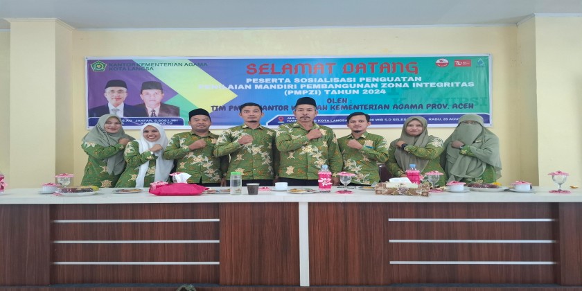 Idi - MTsN 2 Aceh Timur [28/08/2024) --- Madrasah Tsanawiyah Negeri (MTsN) 2 Aceh Timur turut serta dalam kegiatan Sosialisasi Penilaian Mandiri Penguatan Zona Integritas (PMPZI) Tahun 2024 yang diselenggarakan oleh Tim PMPZI Kantor Wilayah Kementerian Agama Provinsi Aceh di Kantor Kementerian Agama Kota Langsa pada hari Rabu, (28/08/2024).